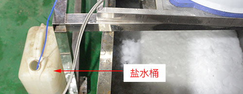 2、加鹽水:標準25公斤鹽水桶加鹽,1噸及以下型號制冰機加鹽300克;1.5噸