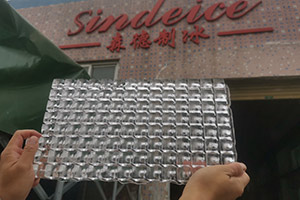 管冰機結構主要包括蒸發器、冷凝器、儲水箱、壓縮機、儲液器幾大部分,其中尤以蒸發器結構最為復雜、精度要求最高、制作難度最大。 管冰機蒸發器結構:蒸發器有缸體、垂直平行的鋼管、灑水器、冰刀構成。蒸發器頂部的導流器以螺旋方式將水均勻地灑到每一根鋼管里面。多余的水就被底部的水箱收集并由水泵抽回到蒸發器中。鋼管外部空間有制冷劑流動并與管內的水發生熱交換,關內水逐漸降溫